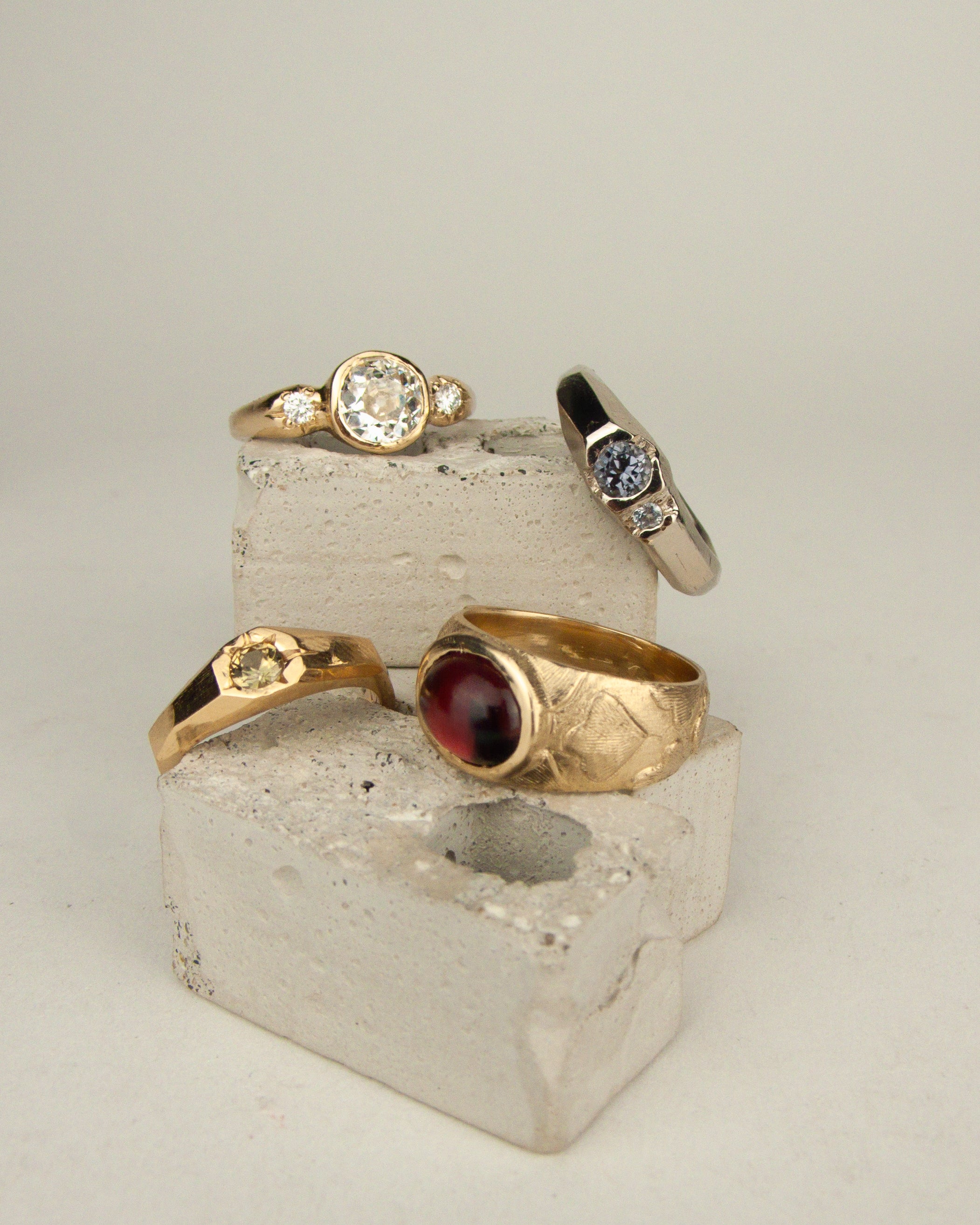 We especially love working with uncommon natural stones but we can get you any responsibly sourced stone your heart desires, including lab grown diamonds!