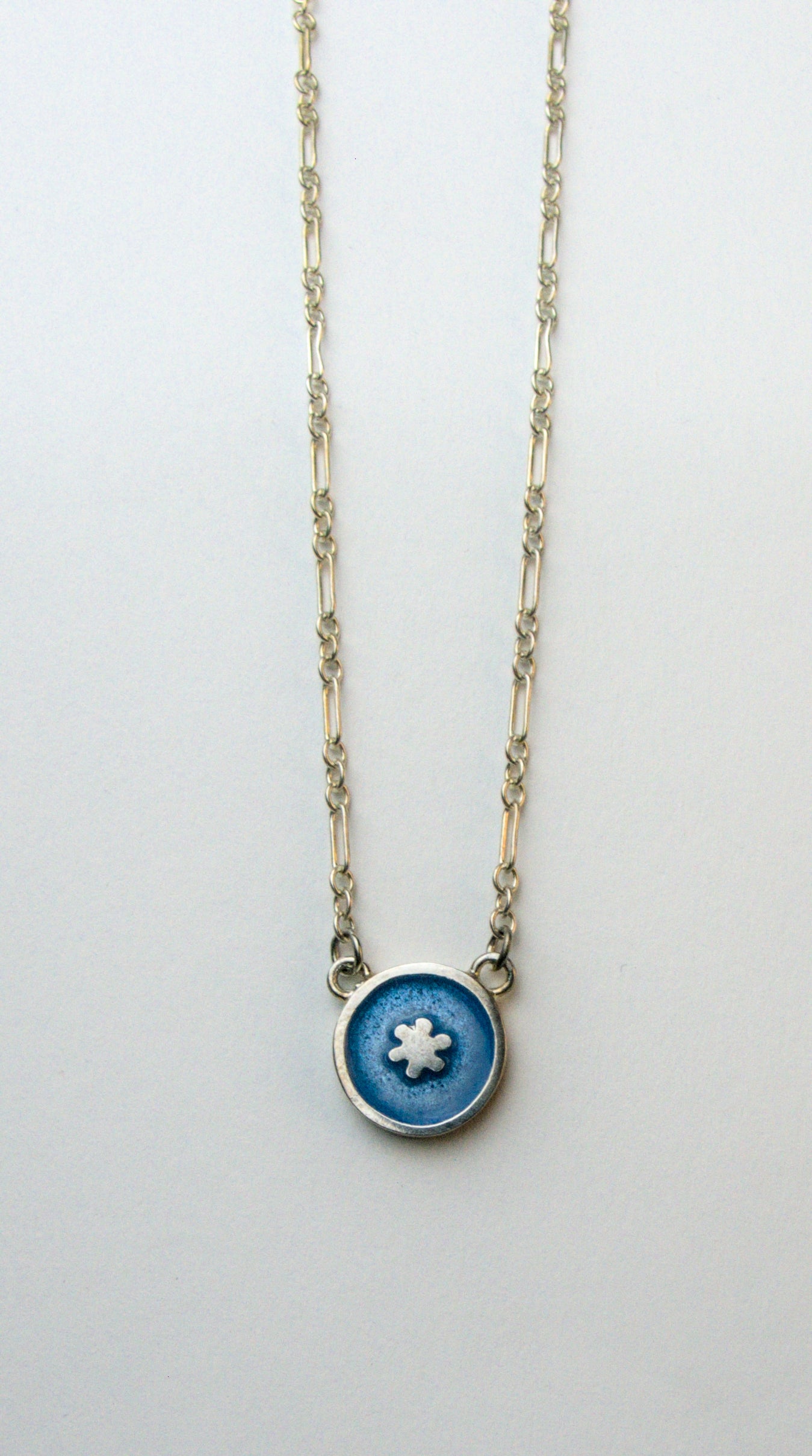 Silver asterisk necklace with hand painted glass enamel inlay.