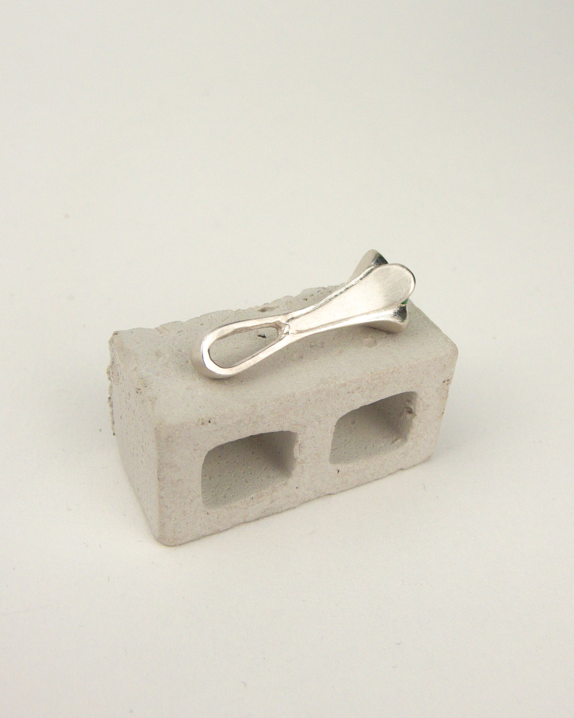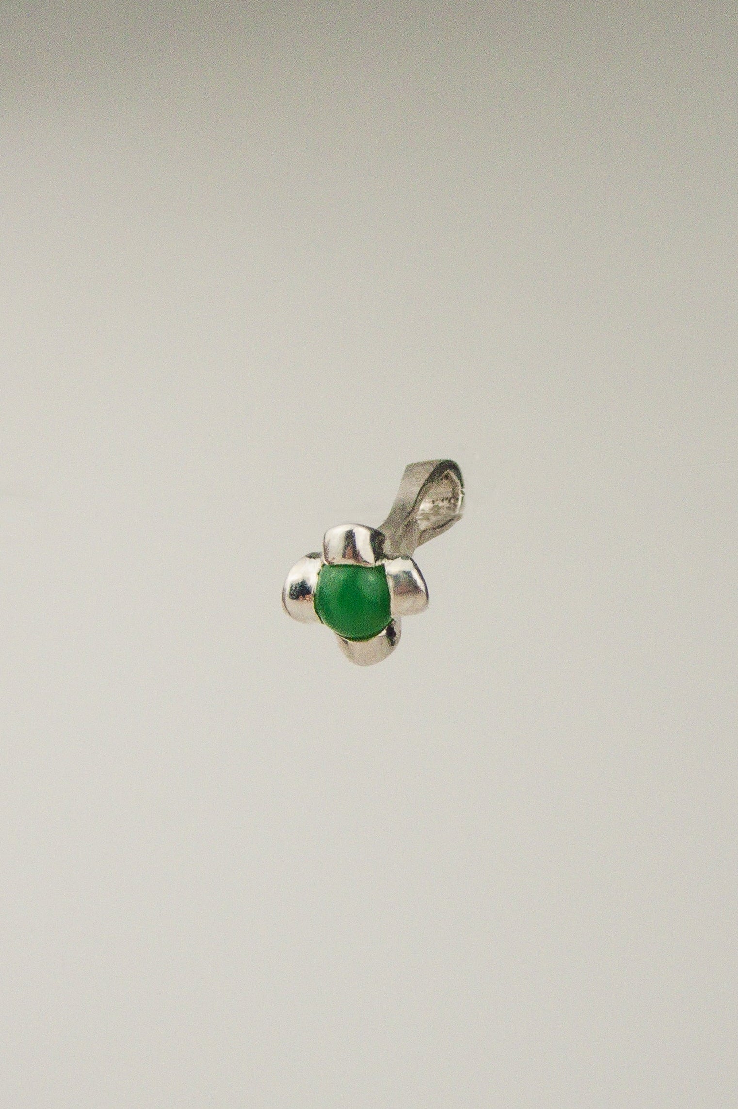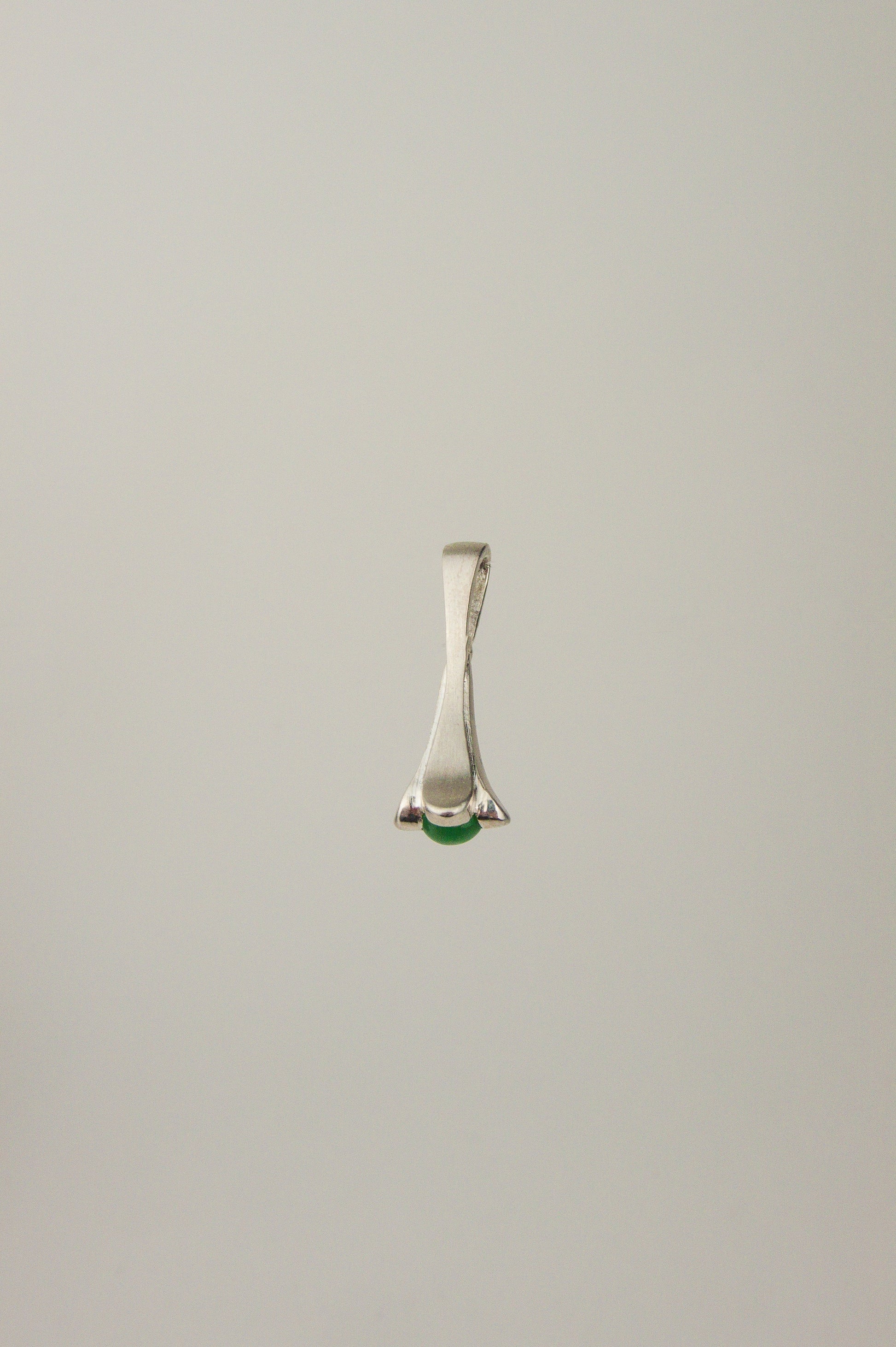 Hand carved sterling silver pendant featuring green cabochon stone. Made in Philly.
