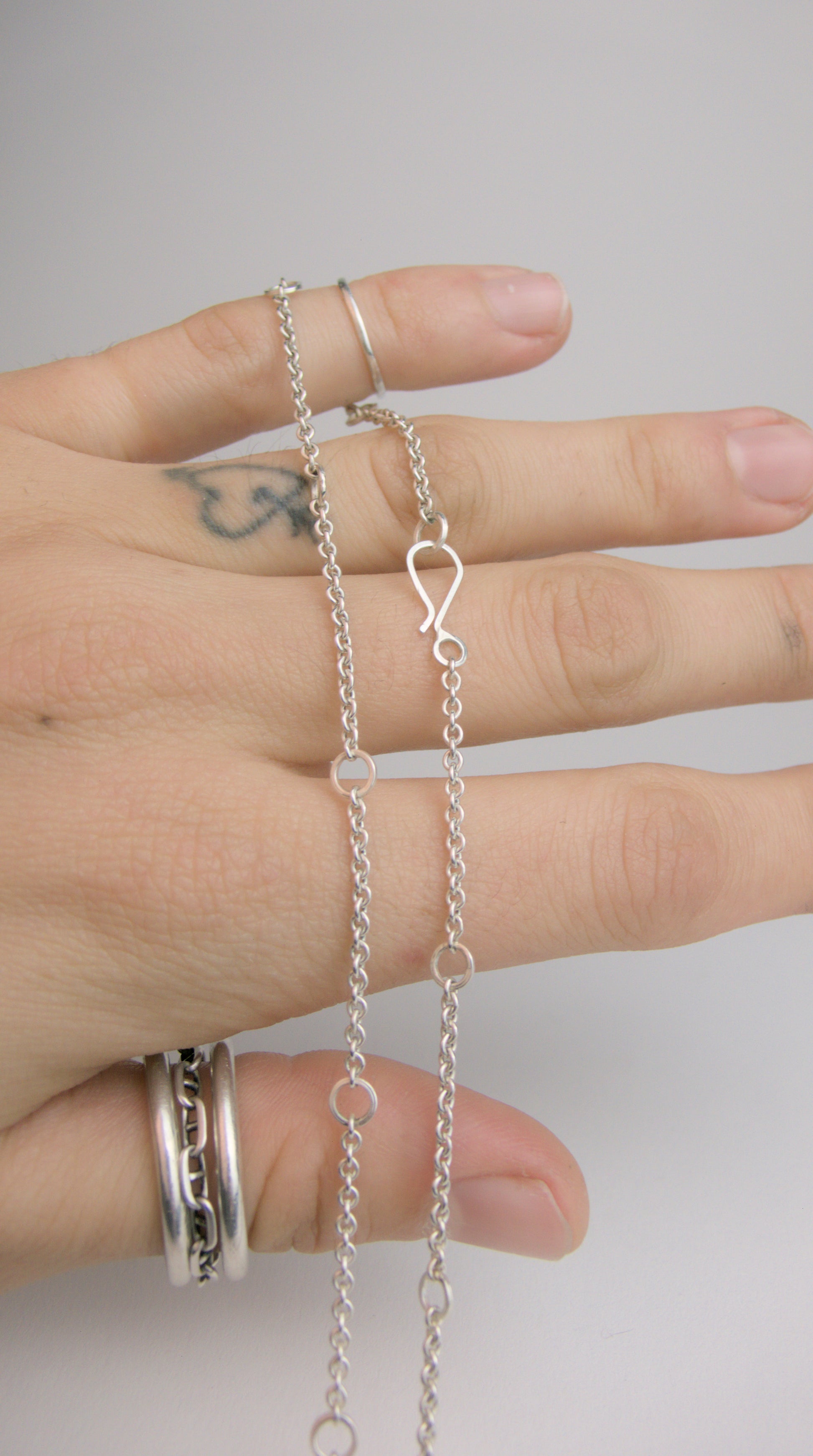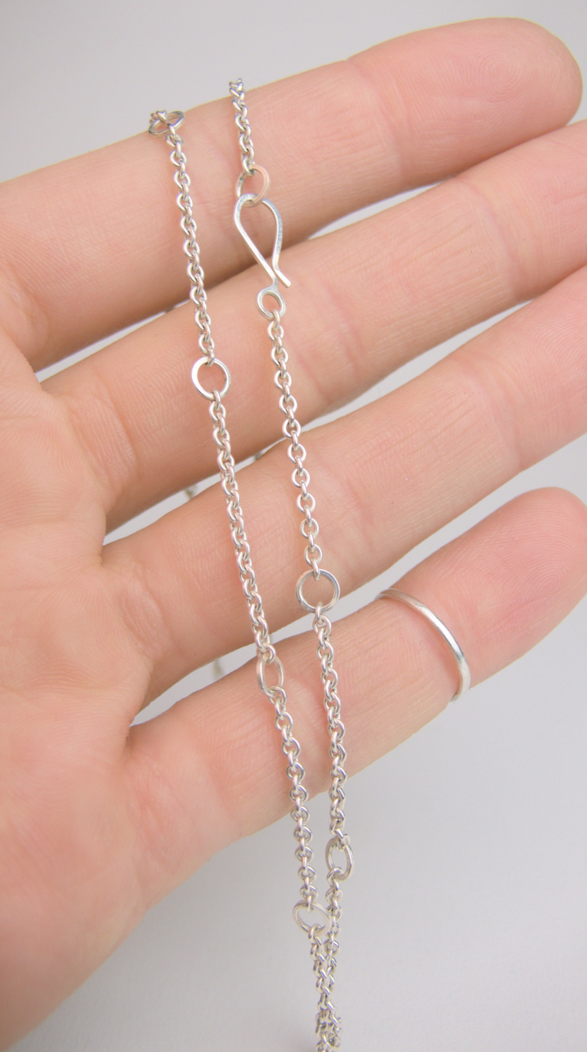 Sterling silver chain assembled by Enamellyse with a handmade shepherd's hook catch.